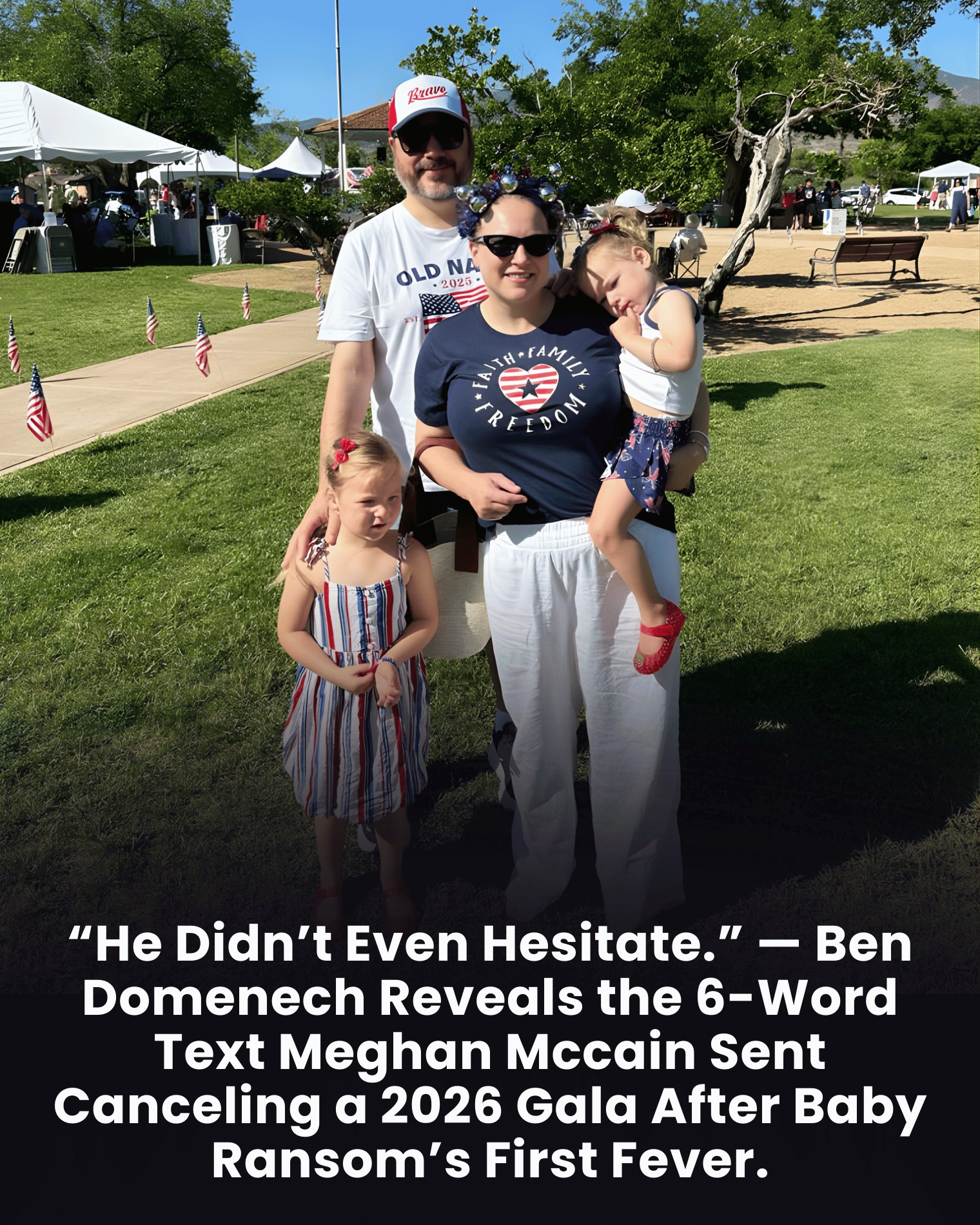 In early 2026, a simple six-word text message quietly revealed a powerful shift in priorities for political commentator Meghan McCain. According to her husband, conservative writer Ben Domenech, the message arrived during a moment that forced the family to choose between public obligations and private responsibility. Without hesitation, McCain made it clear where she stood.